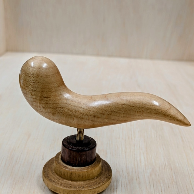 初めて枇杷の木を使ってハンドレストを作ってみました。 前作のメープルよりも重くて大き目のサイズです。 シェラック塗装後蜜蝋クリーム仕上げ。 全長92mm 幅 :16.1mm(最小)~ 21mm(最大) 高さ:17mm〜30mm (軸位置からの厚さ) 最大高 35mm 重さ:23.8g